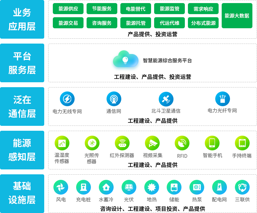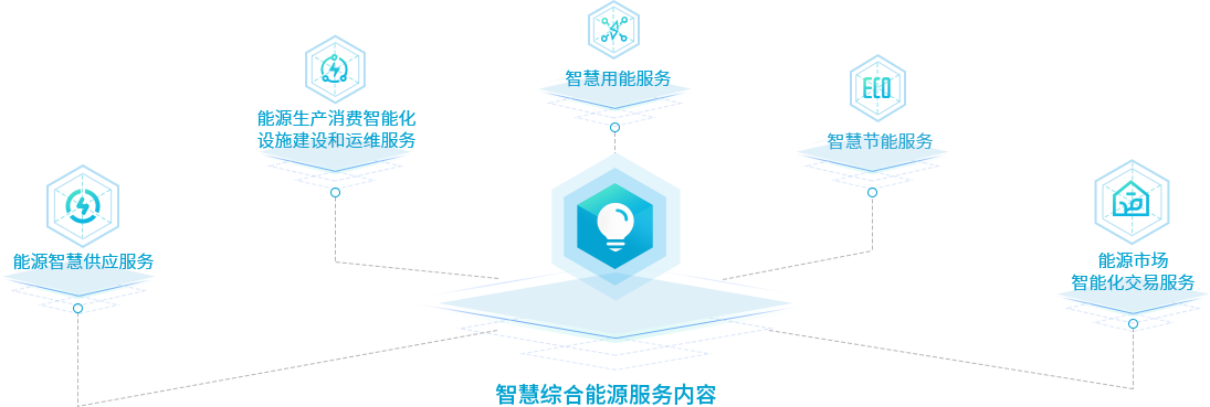 以优质能源服务为基石,发挥能源企业海量用户资源优势,打造涵盖政府、终端客户、产业链上下游的智慧综合能源系统,提供信息对接、供需匹配、交易撮合等服务,为新兴业务引流用户;加强设备监控、电网互动、账户管理、客户服务等共性能力中心建设,为能源企业和新兴业务主体赋能,支撑“企业级、区域级、园区级”服务需求;其中,智慧能源综合服务平台是智慧综合能源服务的核心载体。