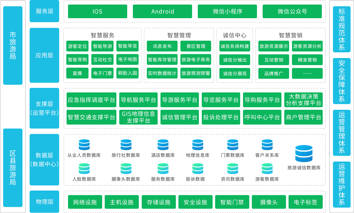 通过大数据技术、将景区、游客、政府等多源数据打通,实现对旅游相关数据的全域化管理,为旅游上层应用奠定数据基础。